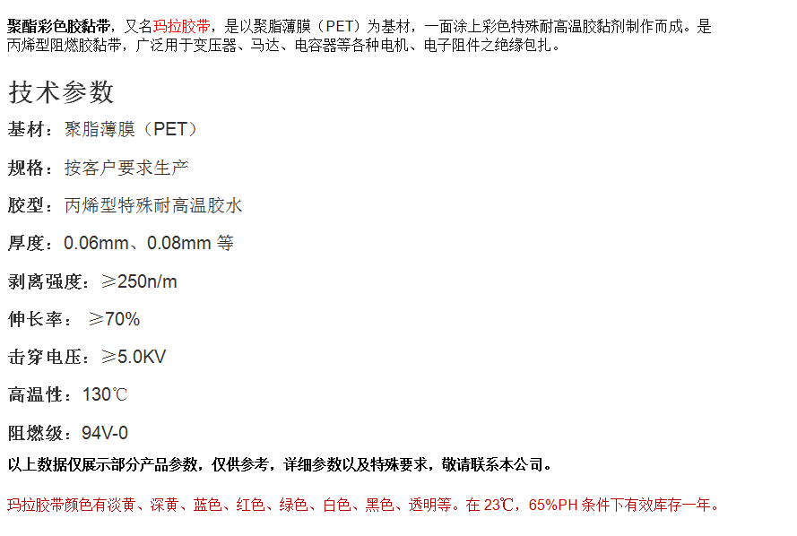 變壓器專用PET彩色膠帶